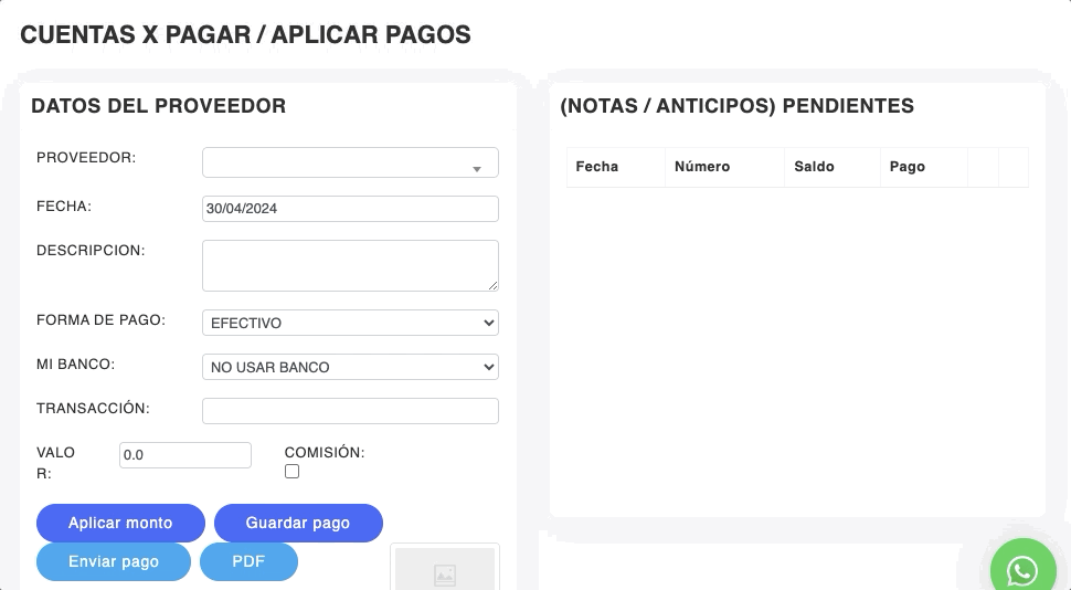 Este proceso sirve para registrar un pago aplicado a un proveedor y de esta forma poder llevar un