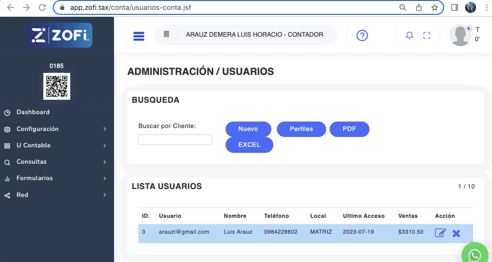 El usuario principal o administrador del módulo tiene que ingresar desde la página https://zofi.tax/modulo-de-contador.html