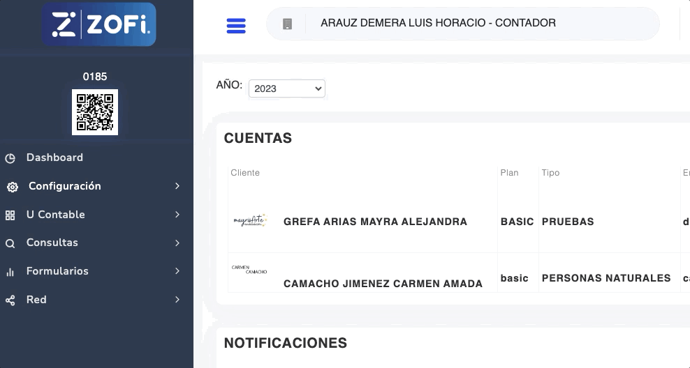 - Perfil del usuario (Administrador o Asistente Contable)