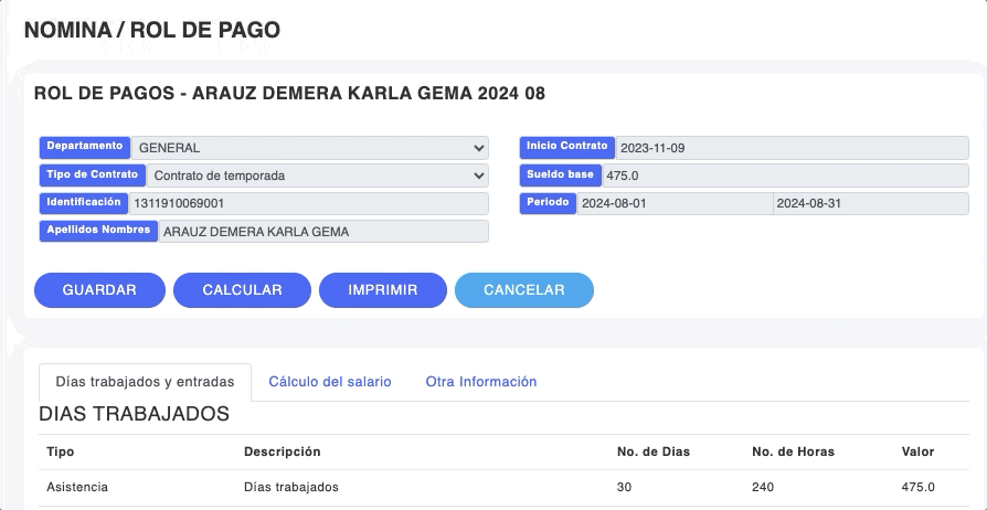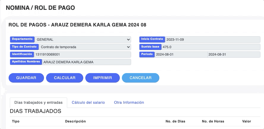 - Verifica que la información de días trabajados y entradas esté correcta