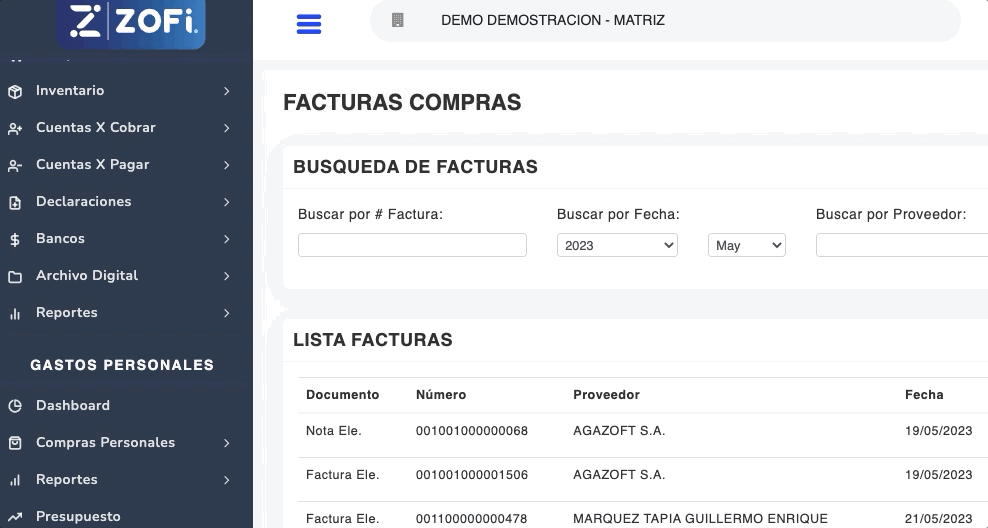 - Puedes verificar que el código del sustento sea el correcto, dando clic en el ícono ZOFI