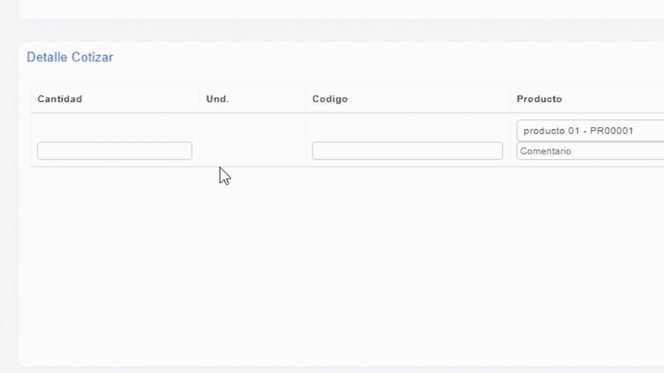 Seleccionamos el PRODUCTO / SERVICIO a Cotizar, la CANTIDAD, PRECIO y % DESCUENTOS de ser el caso.