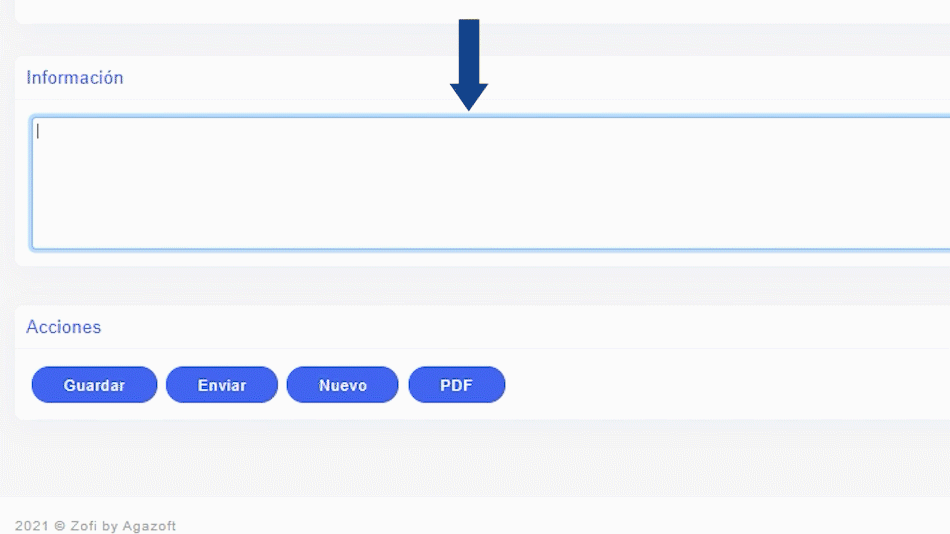 En caso de necesitar información adicional para tu cotización, por ejemplo la descripción producto o servicio que vas a realizar, puedes usar el cuadro de INFORMACION.