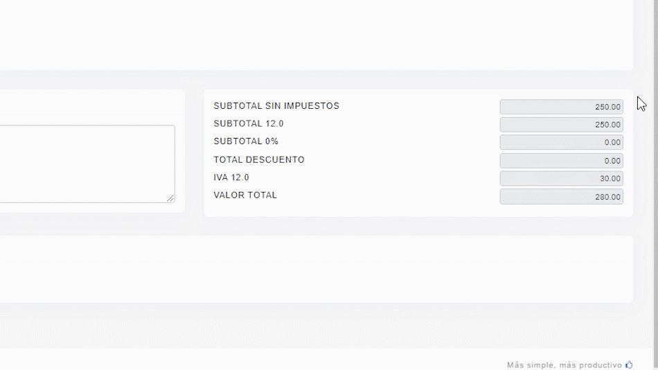 Comprobamos los datos de SUBTOTALES, IVA Y VALOR TOTAL.