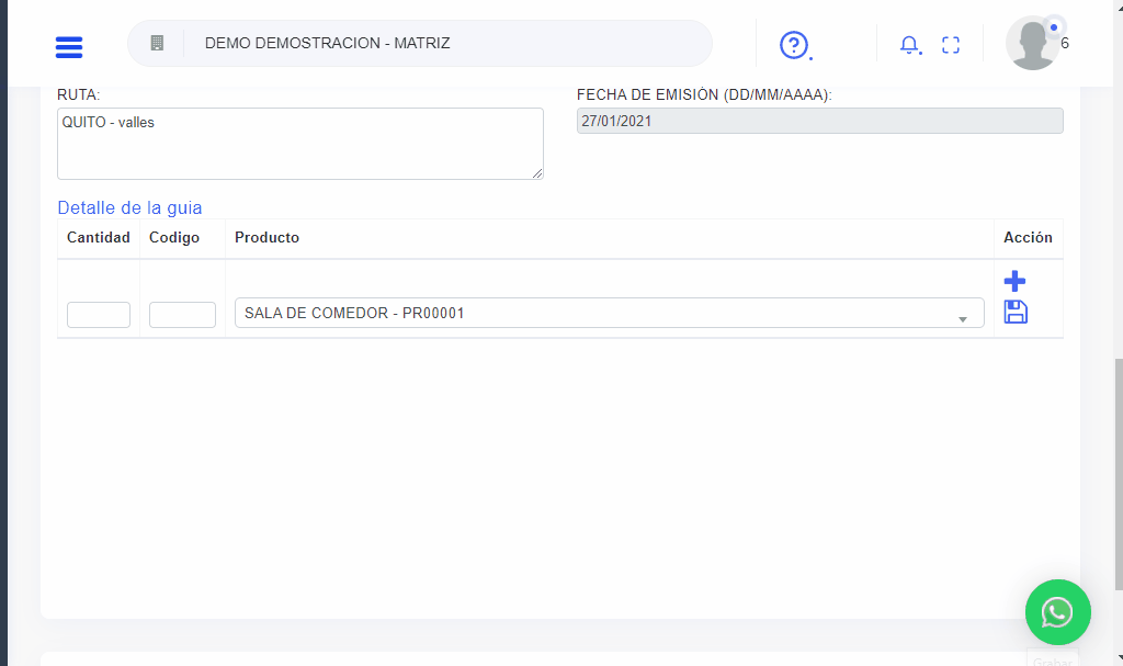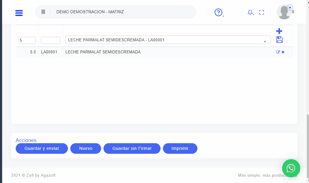 - Seleccionamos la cantidad y producto. Clic en + para añadir artículo.