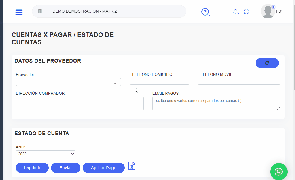 En el menú principal, ingresa a la opción CXP / ESTADO DE CUENTAS