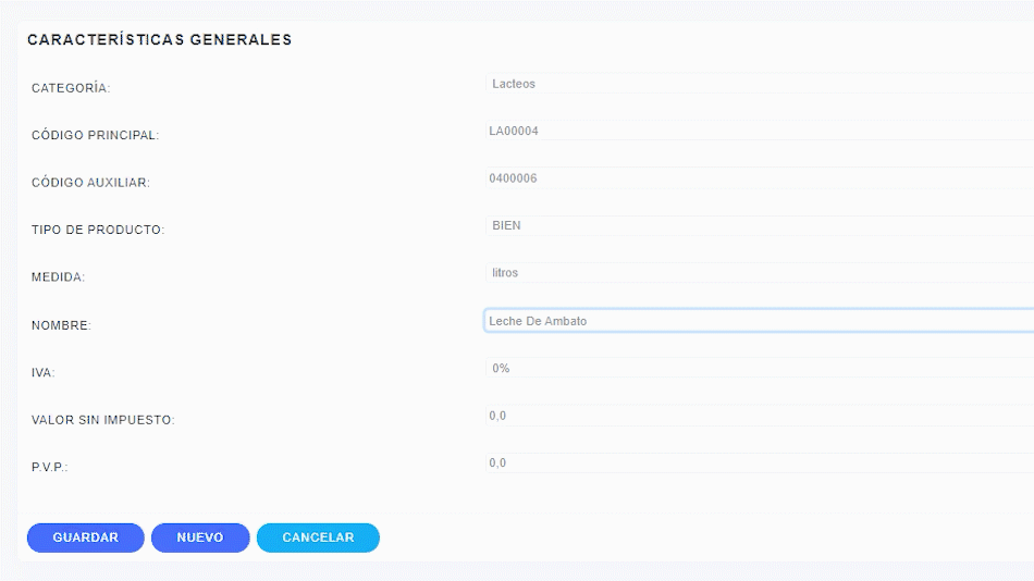 - El CODIGO AUXILIAR sirve para ingresar el numero de código de barras (para micro mercados o comerciantes) caso contrario es automático.